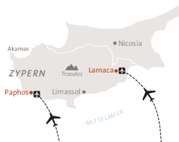 Zypern ist wahrlich ein Paradies für Wanderer & Liebhaber der griechischen Mythologie. Wir wandern auf den Spuren der Götter zu der Bucht, aus der Aphrodite entsprungen ist. Doch auch einen der schönsten Strände Zyperns, den Lara Beach, lassen wir uns nicht entgehen. Wir genießen die Kombination aus Schönheit der Natur mit sagenumwobenen Schauplätzen. Die Kulinarik darf natürlich auch nicht zu kurz kommen und so lassen wir uns nach unseren Wanderungen von der zypriotischen Küche verwöhnen.