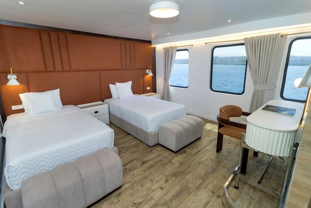 Der heutige Tag ist ein langer Reisetag, der früh am Morgen beginnt. Deine erste Aktivität auf den Inseln wird erst nach dem Mittagessen beginnen. Auf den Flügen zu und von den Galapagos-Inseln gibt es keine Snacks, daher empfehlen wir dir, heute etwas zu essen mitzunehmen. Bitte bedenke, dass es auf den Galapagos-Inseln strenge Quarantänevorschriften für die Einfuhr von Lebensmitteln gibt und dass viele Obst- und Gemüsesorten auf der Sperrliste stehen. Nach dem Einchecken und vor dem Abflug hast du Zeit, um am Flughafen Snacks zu kaufen. Bei der Abreise am Flughafen von Quito ist eine Transitkarte im Wert von 20 USD zu bezahlen und bei der Ankunft auf den Inseln wird eine Eintrittsgebühr von 200 USD für den Nationalpark fällig. Kreditkarten werden nicht akzeptiert, also solltest du Bargeld dabei haben. Deine Reisezeit beträgt heute etwa 8 Stunden. Dein Flug zu den Galapagos-Inseln wird in Guayaquil zwischenlanden, um aufzutanken und andere Passagiere aufzunehmen. Heute Abend segelst du etwa 8 Stunden (70 Seemeilen) nach Bartolome.