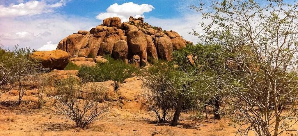 <Deine Reiseleitung erwartet dich am Flughafen Windhoek und führt dir gleich Namibias Hauptstadt samt Christuskirche, Tintenpalast und historischem Bahnhof vor. In der Township Katutura besuchst du die Fraueninitiative Penduka, wo du im Gespräch erfährst, was die Frauen hier bewegt. Schau’ zu, wie Tischdecken und Bettüberwürfe entstehen. Danach geht es in deine Unterkunft in den Erongo-Bergen, ein friedvolles und stilles Fleckchen Erde. -