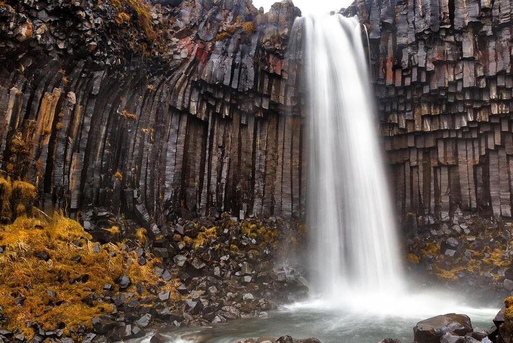 <Today, you’ll board a private vehicle and drive to Thingvellir National Park (Parliament Plains) – your leader will explain how this spot is both the original location of Iceland’s first parliament from AD 930 and a geological phenomenon. From here, enter the Borgarfjordur area and visit the spectacular waterfalls of Hraunfossar (Lava waterfalls) and Barnafossar (Children’s waterfalls). Continue to Deildartunguhver – Europe’s most powerful warm water spring. In the afternoon, head to your overnight stay in the southern part of the Snaefellsnes Peninsula. When you’re settled, meet up with your group for dinner.