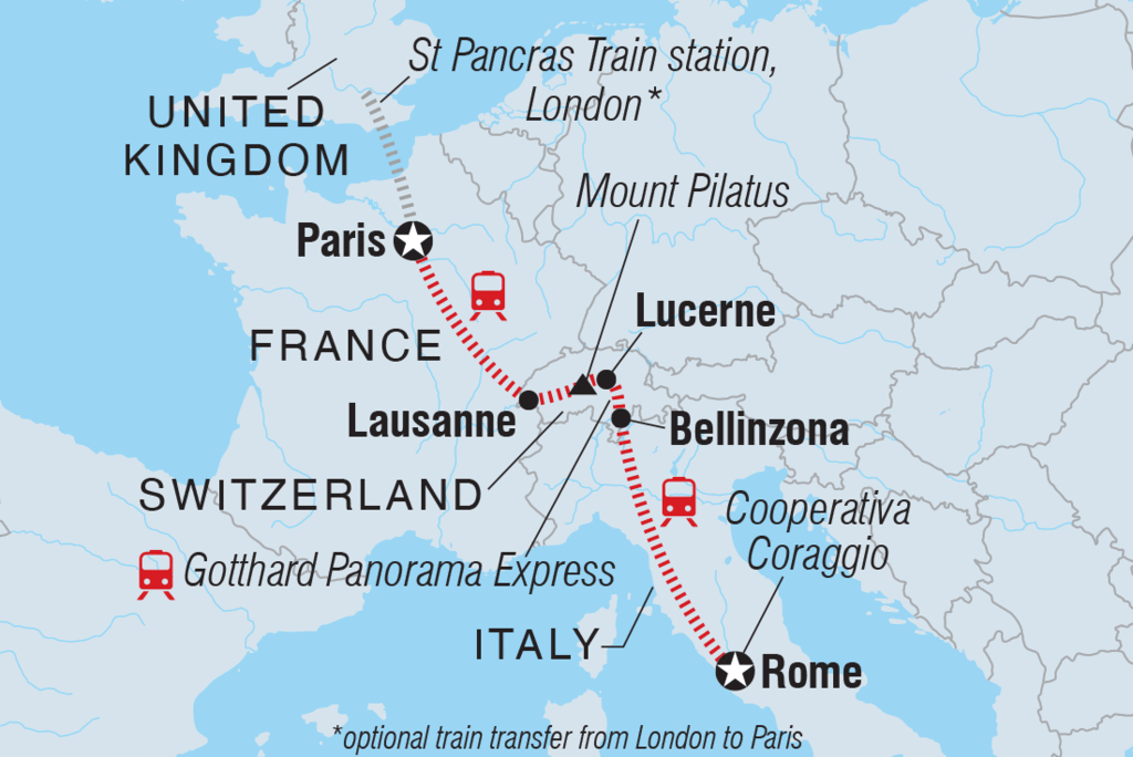 If you’re travelling from or through the United Kingdom, you can add an optional train journey from London to Paris to kick off your journey. This makes for one epic, flight-free adventure. Speak with your booking agent to find out more. It’s very important that you attend the welcome meeting as we will be collecting insurance details and next of kin information at this time. If you are going to be late please let your travel agent or hotel reception know. Ask reception or look for a note in the lobby for more information on where the meeting will take place. -