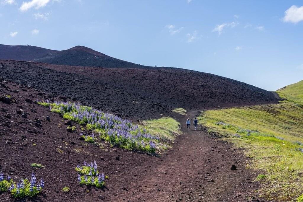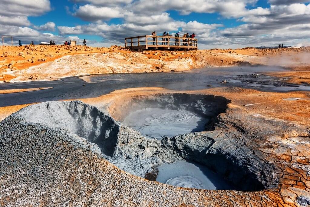 <Continue to Husavik – Iceland’s oldest settlement, founded in the late 9th century. This is the best spot for whale-watching in Iceland – at the right time of year, you might be able to see whales breaching on the horizon. In town, there’s the Husavik Whale Museum and the Husavik Museum, which showcases Iceland’s contribution to Arctic and Antarctic exploration. You might also head to the nearby Geosea Geothermal Sea Baths, where you can unwind as you look out over Skjalfandi Bay. -