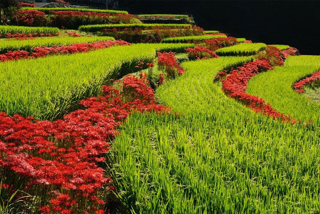 - Berg Aso - Ogi Reisterrassen
