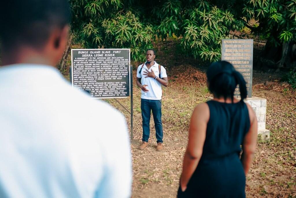 <This morning, set out on a city tour of Freetown with your local leader. Freetown is a major port city and the capital of Sierra Leone. Wander through the local market and visit important sites involved in the brutal transatlantic slave trade like the King’s Yard Gate on the waterfront, where former slaves walked to freedom. After, journey to Bunce Island where you’ll visit the slave fort and learn about the history of the country. Tonight, maybe head out for dinner with your group before settling into your accommodation for the night. -