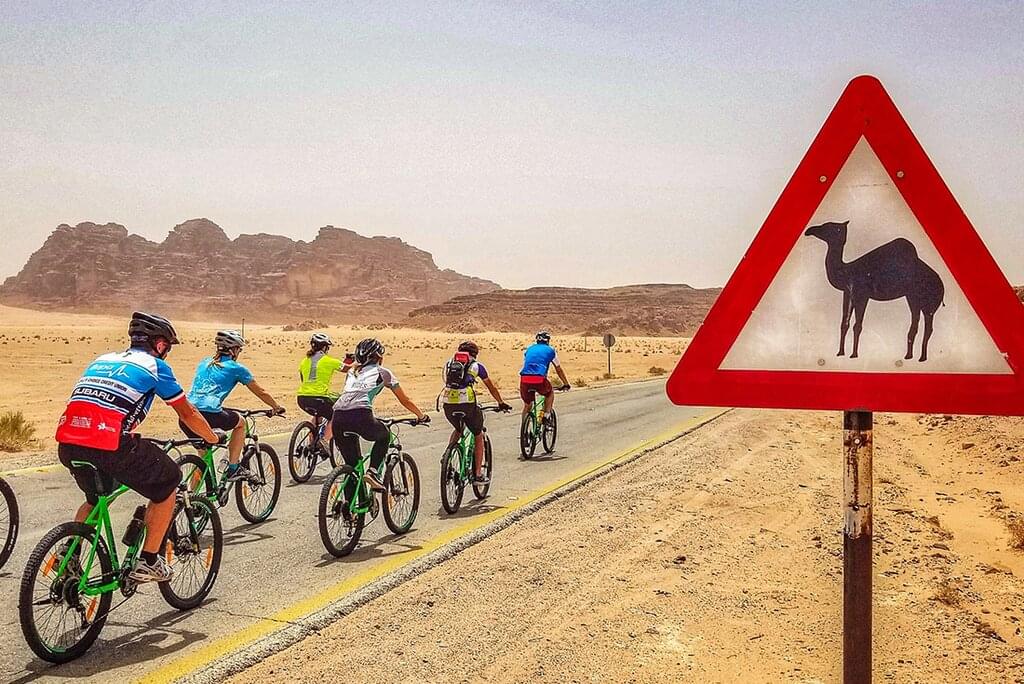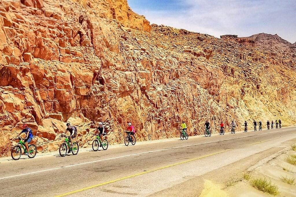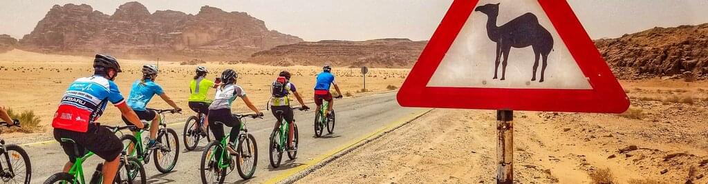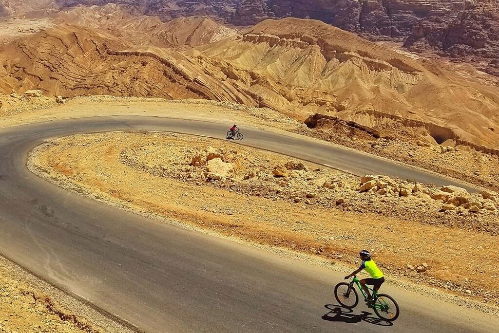 Ride - approximately 28kms/17 miles, downhill for 11kms then undulating with around 160m/520ft of total elevation gain, and 210m/690ft of elevation loss. This is an introductory ride to get used to your bike and riding in Jordan - our team will fit you to your bike. -