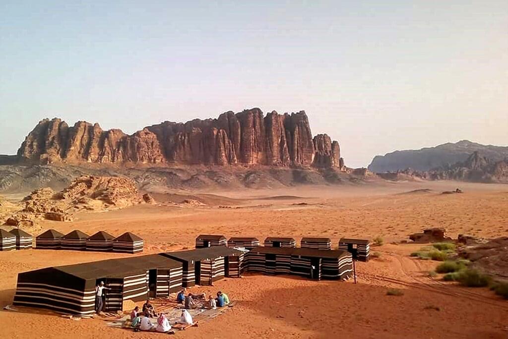 <Ahlan Wa Sahlan! Welcome to Jordan, cosmopolitan and contemporary, yet steeped in biblical history. Your adventure begins with a Welcome Meeting at 6 pm on Day 1. Please look for a note in the hotel lobby or ask the hotel reception where it will take place. If you can't arrange a flight that will arrive in time, you may wish to arrive a day early so you're able to attend. We'll be happy to book additional accommodation for you (subject to availability). If you're going to be late, please inform the hotel reception. We'll be collecting your insurance details and next of kin information at this meeting, so please have these on hand. Should you require a transfer from the airport, this can be arranged on site for $30 a person, or $15 per person for groups of two or more. As you don’t spend too much time in Amman, it's worth arriving a day or two early to explore the sights. If you do have time, be sure to head to the citadel, taking in its amazing sweeping views of Amman. The Jordan Museum (home to the Dead Sea Scrolls) and the Roman Theatre are both well worth visiting. After your meeting, head out with your new-found travel pals, and perhaps pick up a coffee from one of the cafes and partner it with an ara’yes – a local-style toastie filled with spiced meat.