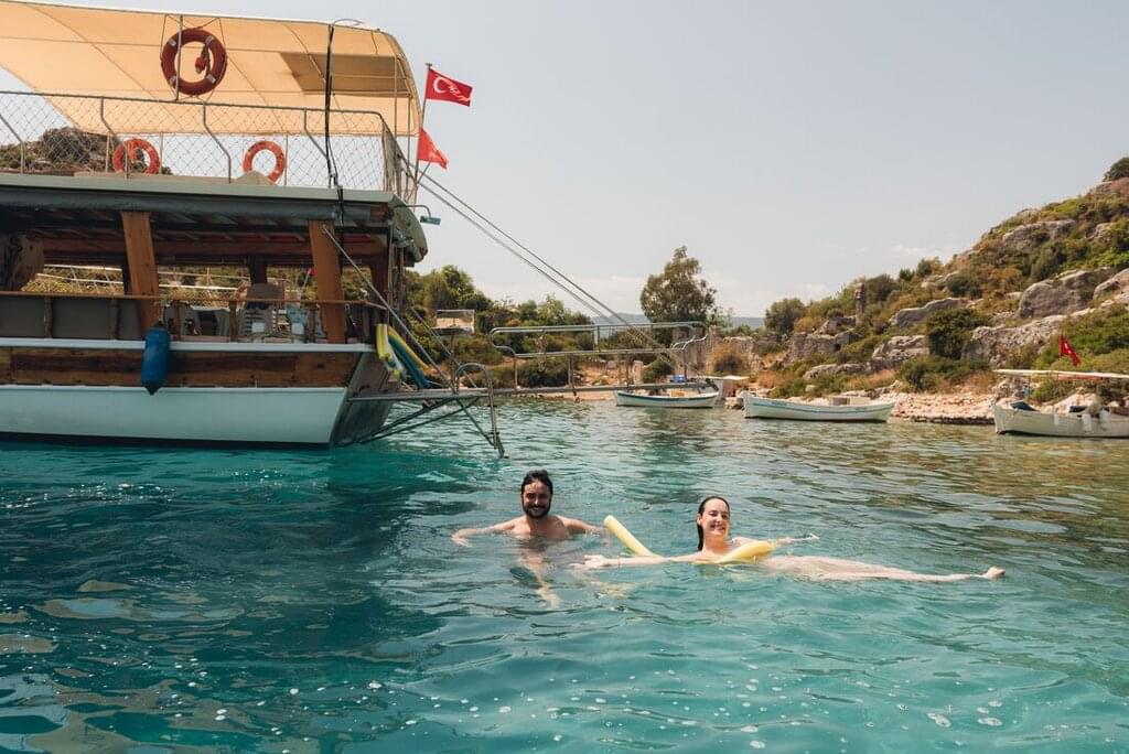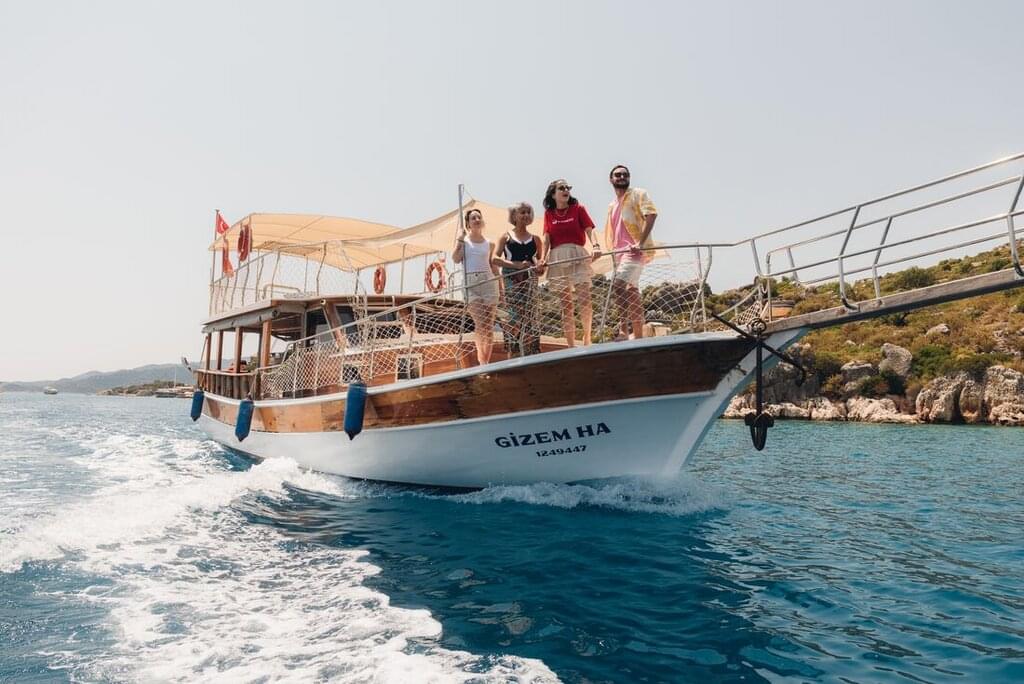 <This morning you’ll set sail for Kadirga’s secluded beachfront. When you arrive, recharge with a refreshing swim, relax in the sun and have some lunch. Then, you’ll continue to Bozukkale, where you’ll spend the night. Have dinner on board the boat, chilling out under the stars.