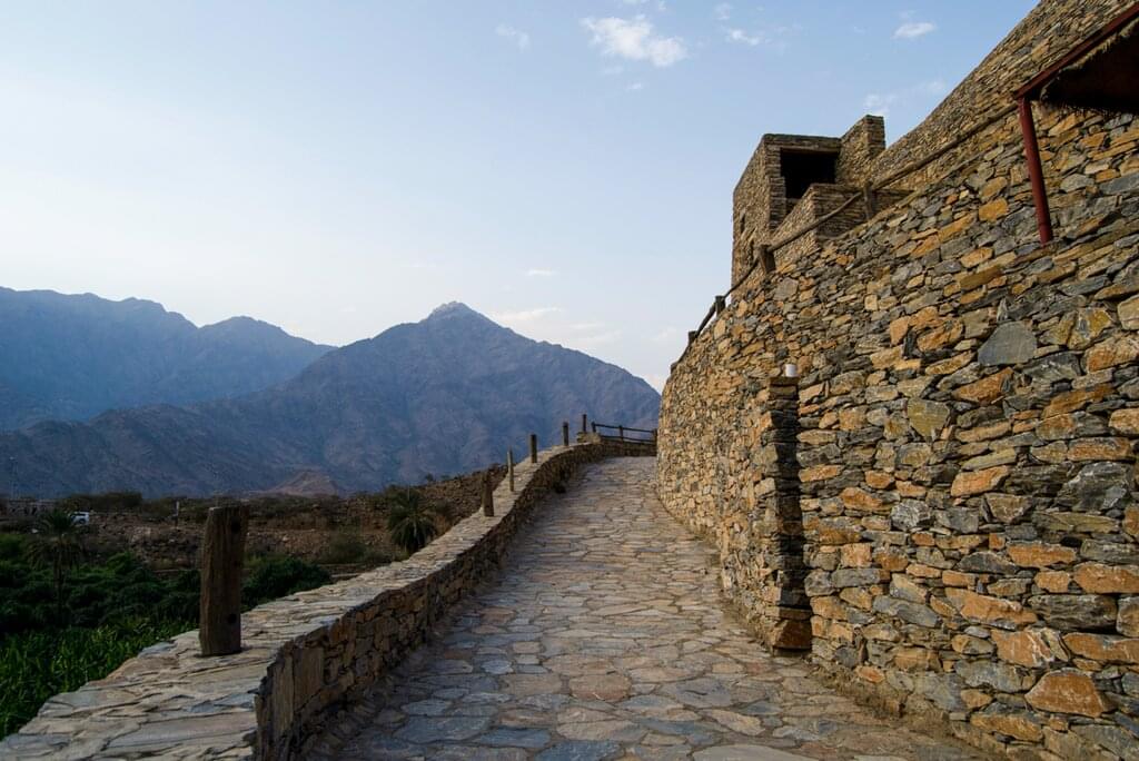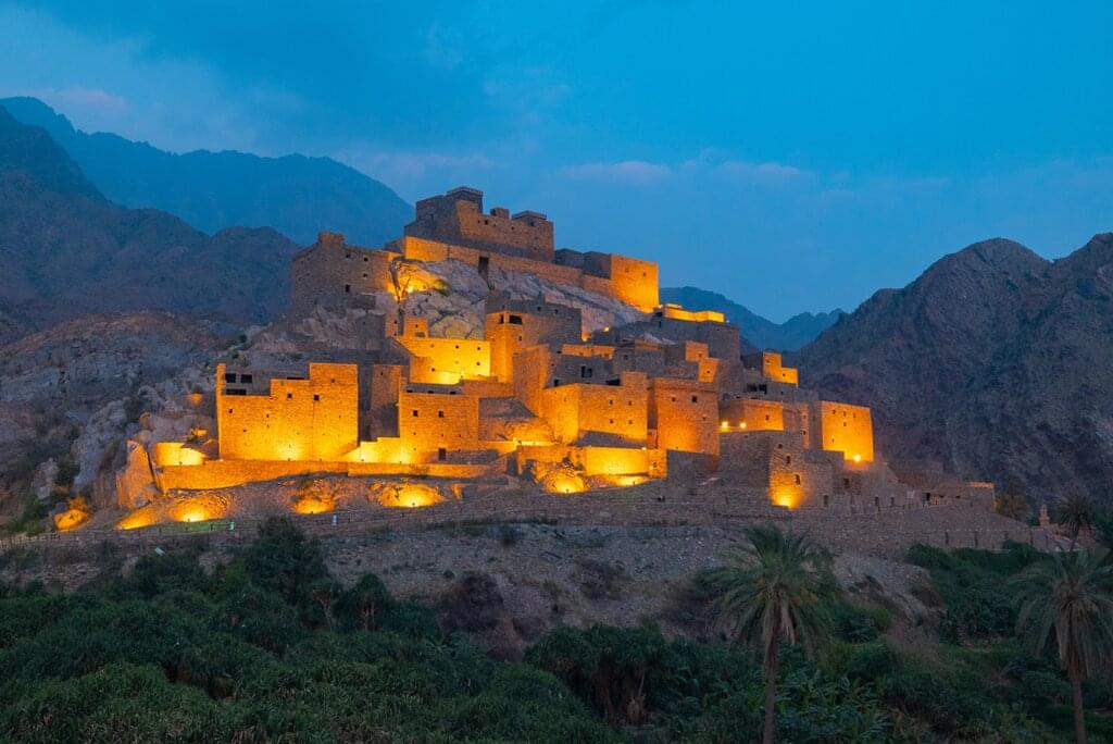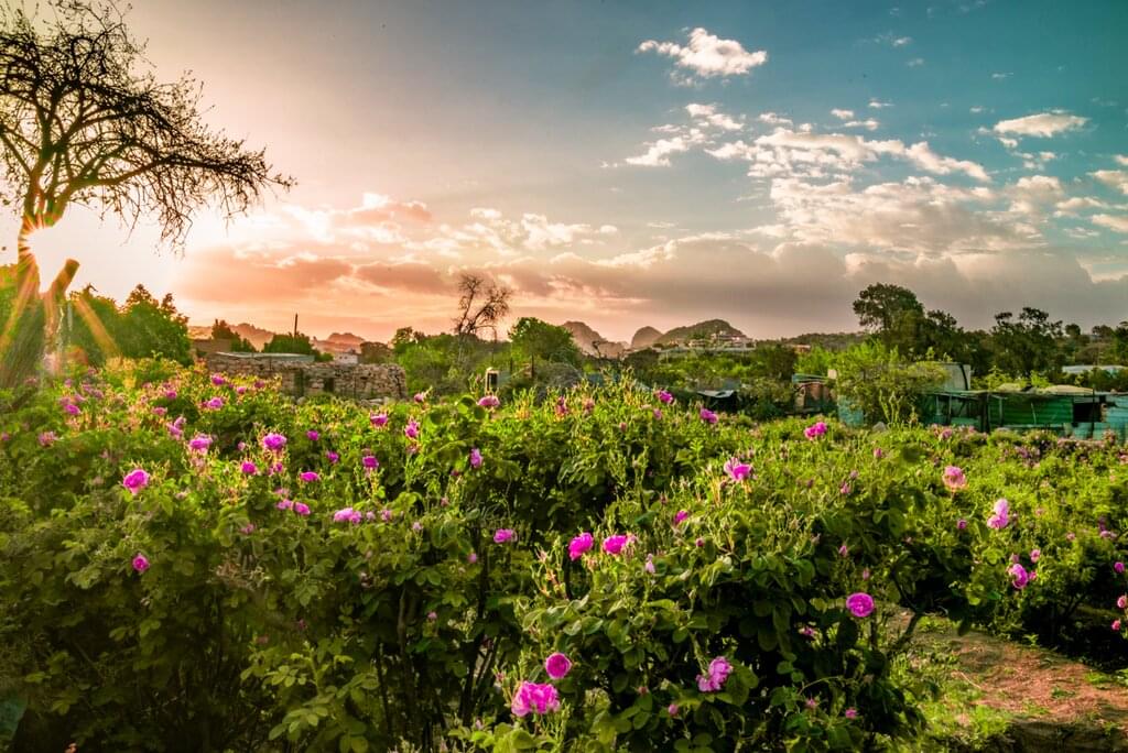 <This morning, travel to Taif, famous for its fragrant Rosa Damascena or Taif rose. Visit a local rose factory and farm to learn about the delicate distillation process used to produce rose water and perfumes. Explore a small museum displaying traditional tools, then watch as farmers extract rose water and oil at this family-run site. Each season, Taif produces over 550 million blooms during a 45 to 60 day harvest that begins in late March or early April. Rose water from Taif is even used to wash the Kaaba in Makkah each year – a cherished Saudi tradition. After lunch, continue to Thee Ain (Zee Ain) in the Al Bahah region – a beautifully restored heritage village perched on a marble hill. Discover its 400-year-old stone homes, palm groves and ancient irrigation canals – perfect for photography during golden hour.
