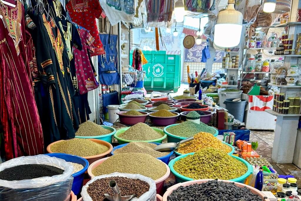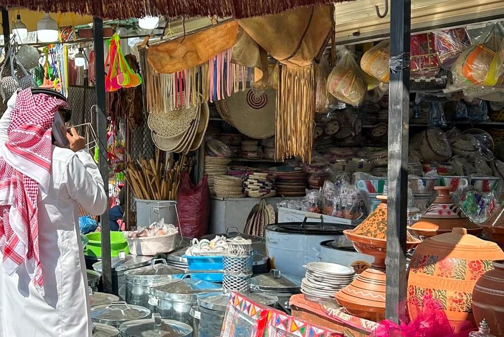<After breakfast, you’ll explore Al Muftaha art district – one of Abha’s most iconic heritage landmarks. Its closely built houses, painted in vibrant Asiri patterns, tell stories of the region’s rich culture. Wander through art galleries, museums and workshops that showcase the work of local artists or perhaps have a coffee in this lively hub. Continue to Souq Al Thulatha – one of Asir’s oldest bazaars, where you can chat with honey traders, browse textiles and pottery, and soak up the community spirit that has thrived here for centuries. Later, step into the home of Assas, a beloved local cook, for an intimate meal of traditional Asiri dishes like haneeth (slow-roasted lamb) and masoub (banana bread pudding), paired with fragrant Qahwa coffee. End the day with a visit to the visit to the home museum of Fatima Faye Al-Almaai, famed for her conservation efforts towards the UNESCO-recognised art form of Al-Qatt Al-Asiri the female owned Qatt Asiri. -