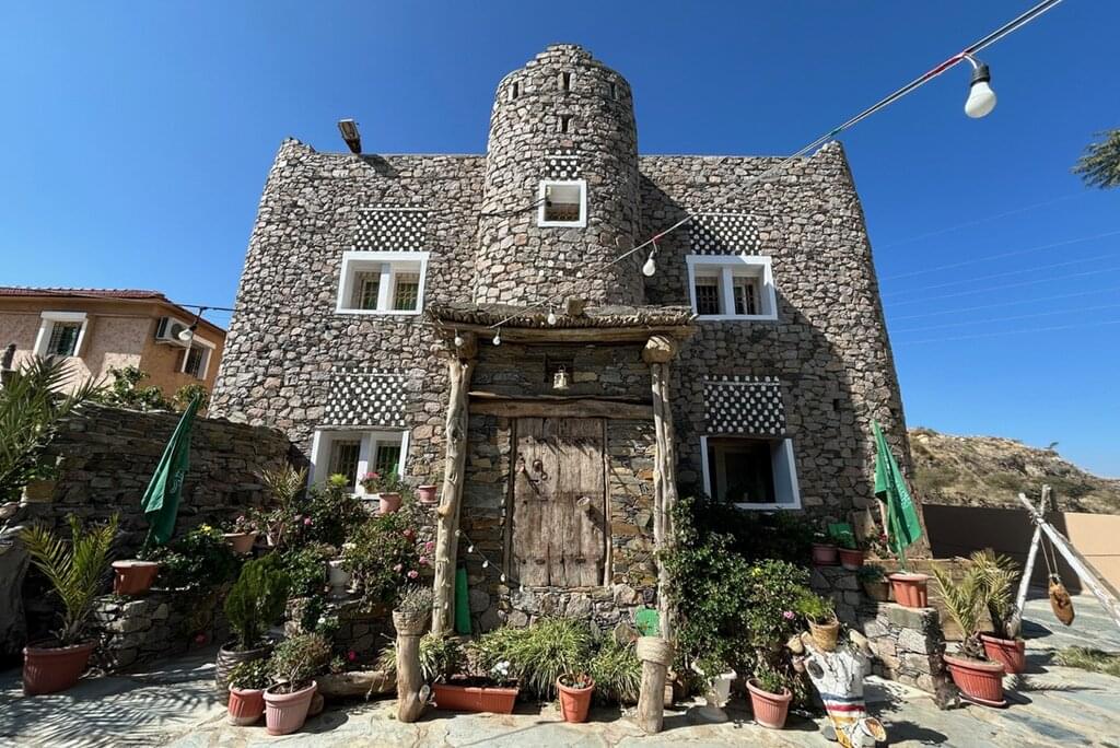 <After breakfast, drive to Al Namas, known as the city of fog. Surrounded by wild forests and misty mountains, this scenic region stretches from Cloud Park to Jebel Mareer, where clear days reveal views of the Red Sea. Visit the grand Al Maqar Museum – an architectural masterpiece built over 35 years using more than two million Asir mountain stones. Inspired by Andalusian palaces, it houses an extraordinary collection of Islamic artifacts from the Abbasid, Umayyad and Ottoman eras, gathered by founder Mohammed Al-Maqar Al-Shehri. Then, continue to Tanomah. Known for its pine forests, waterfalls and misty views, Tanomah offers a peaceful stay in dorm rooms or dome tents. When you arrive, join a guided Ridge Walk through acacia and juniper trees, and look for playful baboons along the trail.