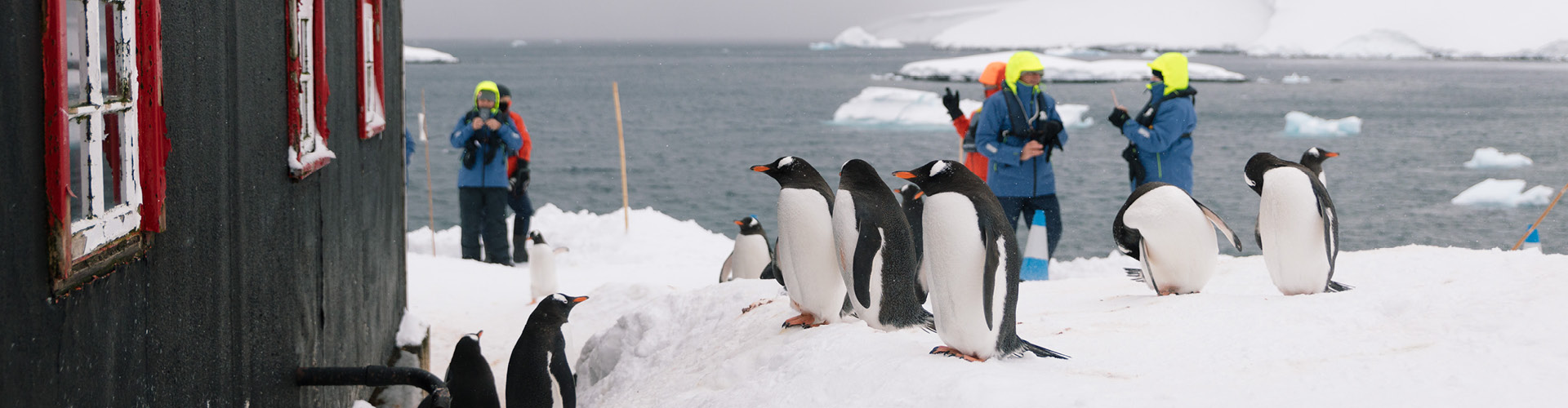 <You’ll spend the next four days exploring the South Shetland Islands and Antarctic Peninsula – a region that has captivated explorers for centuries. Explore the region by Zodiac, cruising among the sculpted icebergs and making shore landings where you’ll mingle with penguins, climb to vantage points for panoramic views and maybe visit a scientific or historical base. There may be an opportunity to indulge in optional activities like an overnight ice camping experience, a snowshoeing trek, a kayaking excursion or to take a polar plunge into the icy Antarctic waters! You’ll see extensive colonies of chinstrap, gentoo and Adelie penguins as well as crabeater, Weddell, fur and elephant seals and many birds. Look and listen for the mighty crack of a glacier calving. A typical expedition day begins with a wake-up call at around 7 am, followed by breakfast. Weather permitting, you can look forward to at least two excursions each day, offering plenty of chances to immerse yourself in the Antarctic landscape.