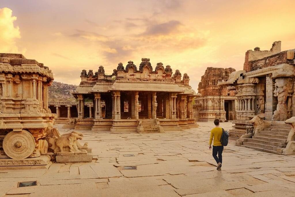 • Explore Hampi’s UNESCO World Heritage Sites where ancient ruins and carved stonework reveal the grandeur of the Vijayanagara Empire.