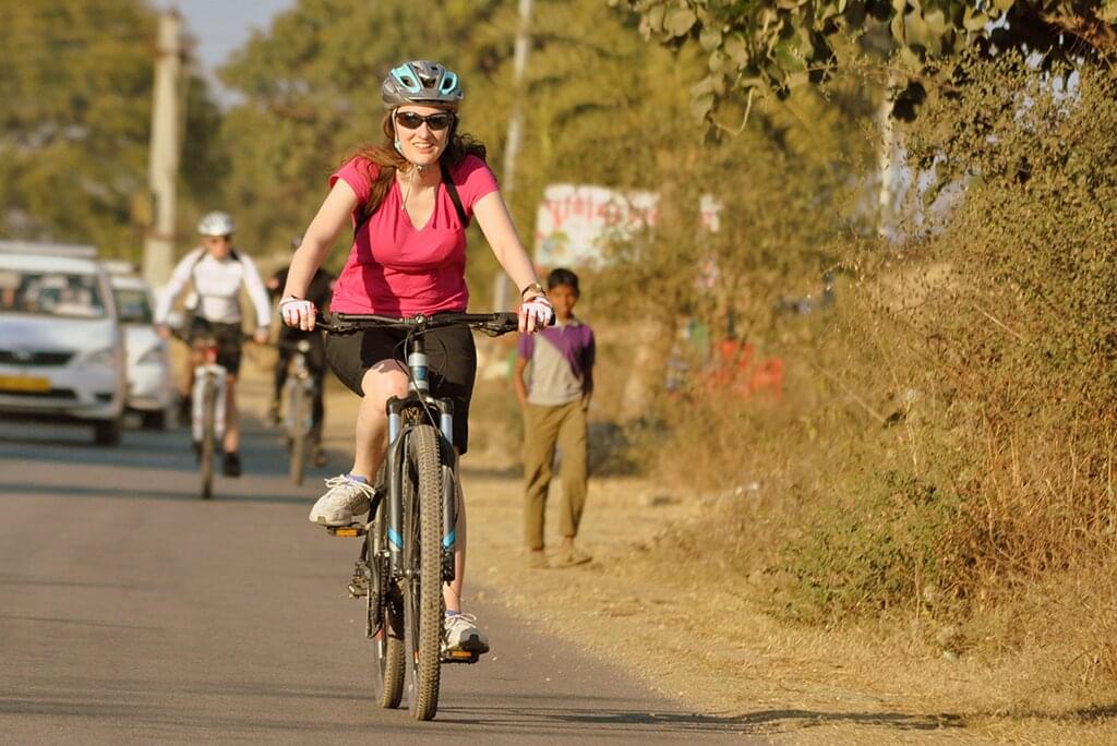 <Namaste! Welcome to India. Your adventure begins in Delhi with a welcome meeting at 6 pm tonight. If you arrive early, there are plenty of things to see and do –maybe visit the World Heritage-listed Humayun's Tomb or the 12th-century Qutub Minar. As the former residence of royal families and British soldiers, the Red Fort plays a vital part in Delhi’s history and is must-see when you’re here. You could also book an Urban Adventure to see Delhi through the eyes of a local. After you meet your fellow travellers and trip leader, you’ll meet your cycling crew and get fitted out for your bike – then, you have free time to grab an optional group dinner and get to know each other a little better.