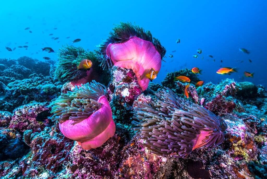 <The Maldives is home to one of the largest nurse shark populations and it’s only growing in numbers. This morning, go snorkelling and maybe even spot some reef sharks and manta rays, too! After, sail to a coral garden that’s filled with life and snorkel among sea anemones and clown fish. Then, set sail to Fulidhoo – famous for the construction of wooden boats. Make your first journey to land for a walk through the local village, learning about the local customs and way of life on the island. Later, take part in a hedhikaa (Maldivian treats) experience at a locally owned cafe. Enjoy some traditional homemade snacks served with black tea and chat with the locals. Tonight, you’ll have dinner on the beach accompanied by a performance of Bodu Beru (translating to ‘big drums’) and Langiri folk music – a form of traditional music centred around percussion with roots from East Africa. This is the most popular traditional music in the Maldives, and you can join in with the locals to learn a few traditional dance moves!