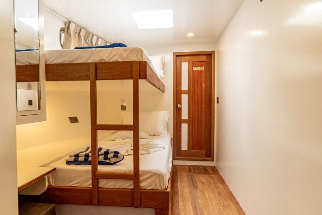 <Wake up in the lagoon this morning, surrounded by clear, light blue waters – you might even be lucky enough to see your first dolphins of the adventure! Maybe hop straight in the calm waters for a morning swim, then sail through the lagoons of Vaavu Atoll, soaking up the paradisical scenery on your way to Khudi Boli. When you arrive, take to the water for a snorkel among the large expanses of coral that shelter hundreds of shimmering fish. Back on the boat, maybe open one of the books in the library to learn more about the varieties and species here. If you like fishing, maybe go with the captain on the motor dinghy and catch some fresh fish for tonight’s dinner on board.