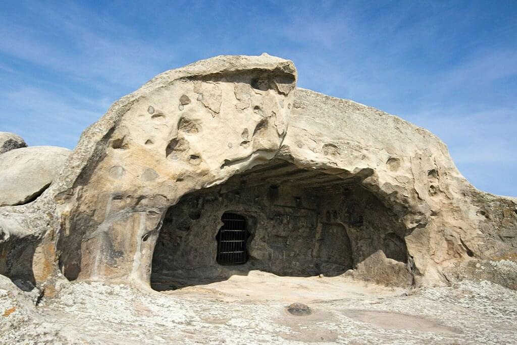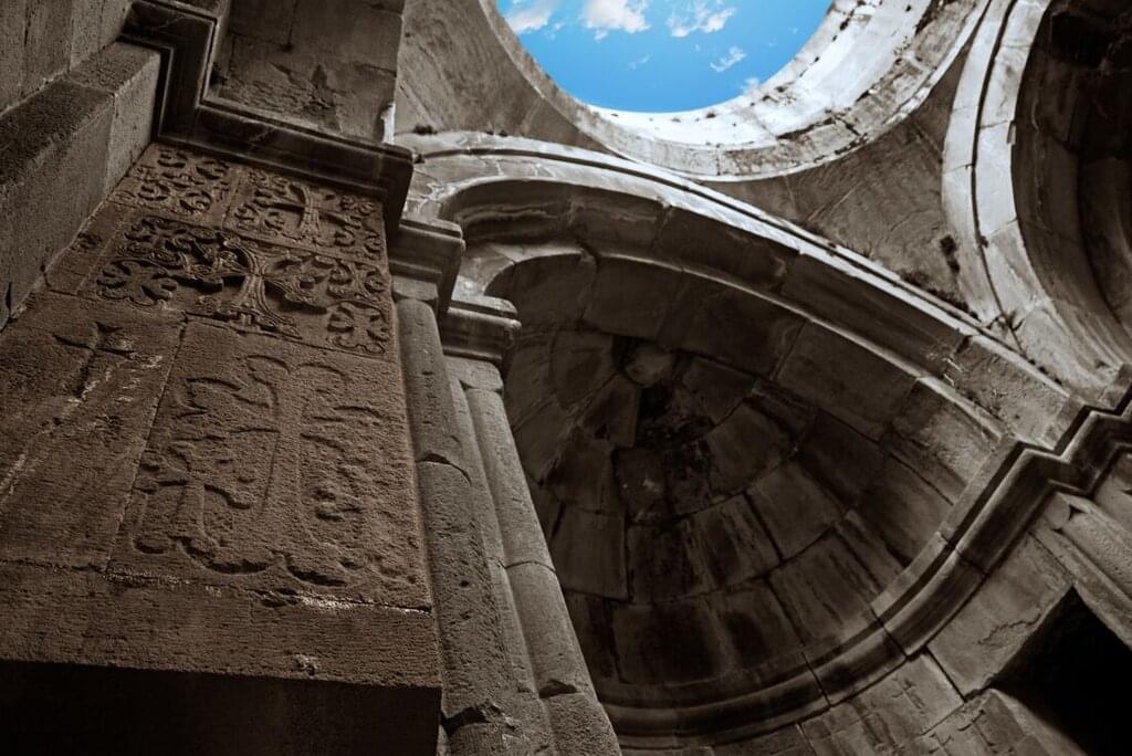 <This morning, set off for the once mighty cave city of Vardzia, which stretches over half a kilometre along the Mtkvari River and has 19 tiers of winding cobbled streets. Within the complex, there’s a rock-hewn church with 12th-century frescos, dwelling quarters, small, hall-type churches, refectories and wine cellars. You’ll explore the site with your leader who will give some historical context and explain the rise and fall of the city, which now serves as a working monastery. Then, continue across the border into Armenia, arriving in Gyumri around lunchtime. Head out in the afternoon and explore this charming town with your leader on an orientation walk.