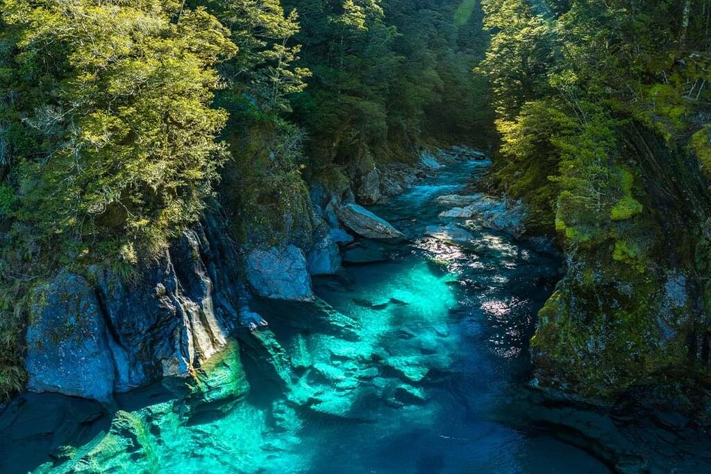 <Today begins with a visit to the Hokitika Gorge, one of the West Coast’s most stunning spots. Shimmering turquoise waters wreathed with lush native bush make a sight to remember. Then it’s on to the Okarito Lagoon, alive with the calls of over 70 unique species of birds. Head out on a nature walk culminating in a lookout point from which, on a clear day, you can enjoy an unbeatable view over Westland (Tai Poutini) National Park from the snow-capped Southern Alps (Ka Tiritiri o te Moana) across extensive native forest to the lagoons and beaches of the coast. Continue your journey south to the Fox Glacier township, your gateway to the dramatic and enormous Fox Glacier and your base for the evening.