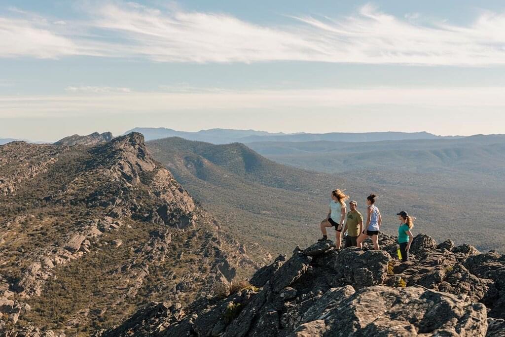 <Today, you’ll head off to Mt Zero Trailhead – the most northern section of the Grampian Peaks Trail. Heading south, you’ll hike mainly along the ridgeline, passing over rocky slabs with views of Staplyton Amphitheatre and the orange wave of Taipan Wall. Then, venture through low forest and dense scrub to Golton Creek. Ascend again toward the Mt Difficult Range to reach Barigar (mountain stream) passing small creeks and seasonal rockpools along the way. Finally, you’ll trek through grassy woodlands before the ridgeline takes you to Roses Gap. After the hike, return to Halls Gap for the evening.
