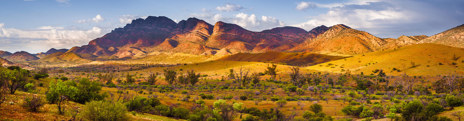 <Welcome to South Australia! Your adventure begins in Adelaide (Tarntanya in the language of The Kaurna people, who are the Traditional Owners of the land on which Adelaide is now located). Adelaide is your gateway to Ikara-Flinders Ranges National Park. You’ll be picked up by your local leader to meet your fellow travellers at 8 am this morning, then it’s time to head towards the peaks of the Flinders Ranges. Make a stop in the town of Crystal Brook for some morning tea, then continue to Mt Remarkable National Park. Surrounded by diverse wildlife and unique landscapes, this is the perfect place to enjoy a picnic lunch. Then, head to Alligator Gorge, with its red quartzite formations. Get to know the landscape on a short hike around the gorge as your leader shares facts about the geological wonders found here. Finally, continue to Melrose – your base for the night.