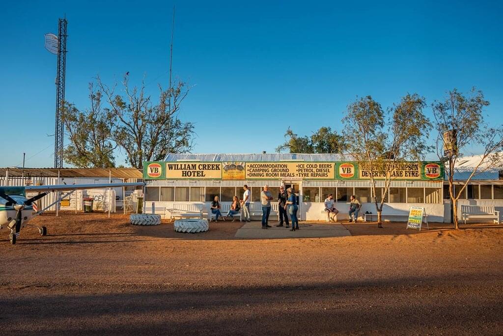 <This morning, head out to Kanku-Breakaways Conservation Park – a registered Aboriginal heritage site – and see the dog fence (also known as the dingo fence), before travelling back to Coober Pedy for an optional lunch at a local café. Then, drive into the remote South Australian Outback along a rough dirt road to William Creek, where you can enjoy a cold beer and check out the ‘museum’ of memorabilia across the street. Tonight, you may choose to join your group for dinner at the local pub.