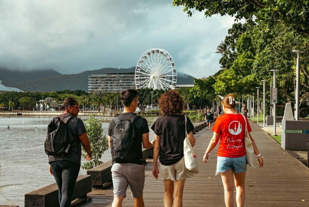 <Welcome to Cairns! Known as Gimuy in the language of the Traditional Owners of the land on which Cairns is now located, this is the gateway to Australia’s Great Barrier Reef and Daintree Rainforest. Your adventure kicks off with a welcome meeting at 6 pm, where you’ll meet your group leader and fellow travellers. If you arrive in Cairns with time to spare, you might like to check out the Cairns Botanical Gardens or simply wander the waterfront promenade, popping into any of the local bars that take your fancy.