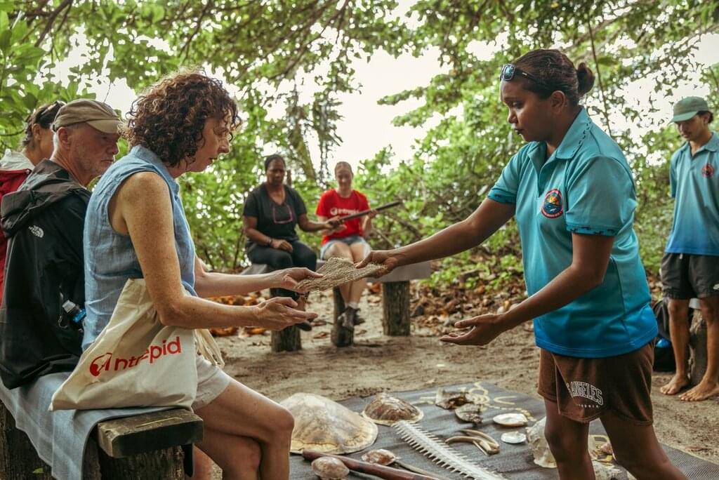 <After breakfast, head out on a First Nations-guided eco-tour of Mandingal Bay. The Traditional Owners of this land will teach you about Country, where mountains are home to rainforests and vast wetlands are home to local birdlife. Walk to Hills Creek, where the sea meets the fresh water and attend a Welcome to Country and Smoking Ceremony. Then, join your guide on a rainforest trail and learn about ancient Aboriginal traditions, customs and artefacts as you listen to the sounds of nature. After, you have a free afternoon in Cairns to grab some lunch, head to a local art gallery, explore the aquarium or just soak up some sun on the promenade.