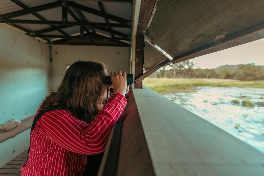 <This morning, enjoy breakfast and then drive to Kuranda – perched at the top of a mountain. Start with a visit to nearby Barron Falls lookout for the best photo spots, then head into town. You’ll have some time to explore this charming rainforest town and its surroundings at your own pace. Maybe check out the famous Kuranda Markets, or relax at one of the town’s many restaurants and cafes, where outdoor dining is one of the joys of the cooler mountain climate. This afternoon, visit the Tolga Bat Hospital – Australia’s largest bat rehabilitation facility. Here you’ll learn about the facility's research, advocacy and community education and make some new upside-down friends. Tonight, you’ll head to the Mareeba Wetlands for an exciting wildlife spotting experience at sunset, hosted by Forever Wild – an organisation that creates community and nature-based solutions to the climate and biodiversity crises.