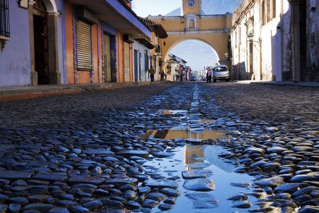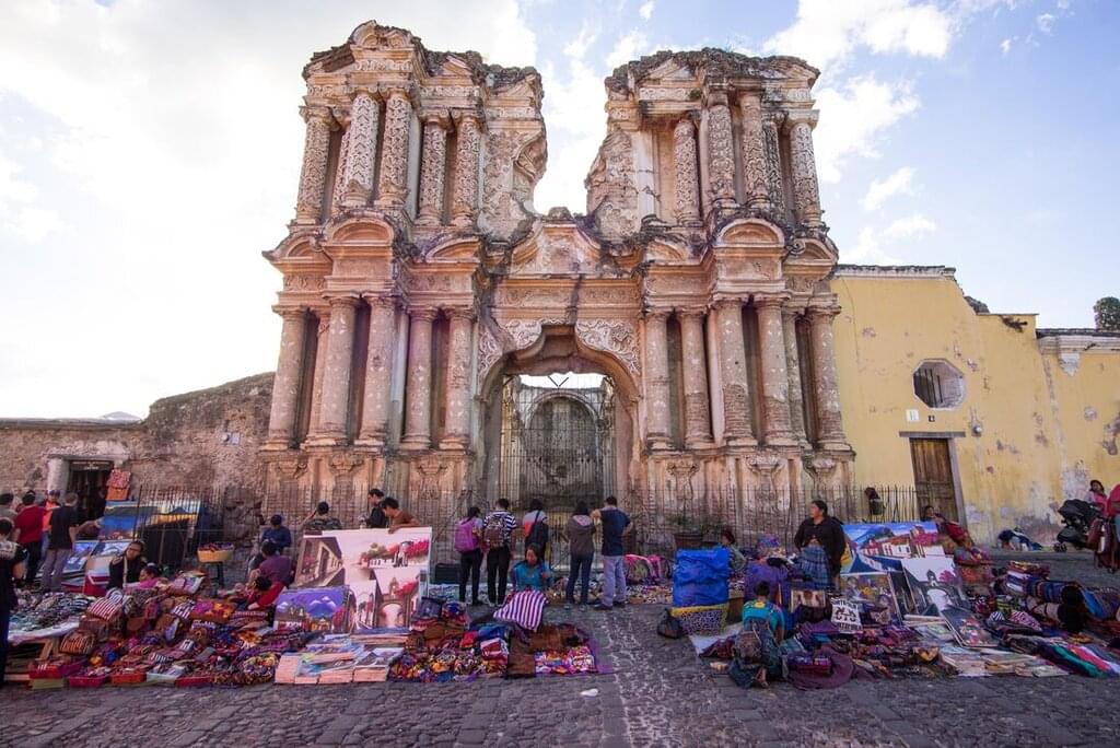 • Join your local leader on an orientation walk through Antigua. By starting and ending your trip here, you’ll be sure to see the city’s restored Spanish buildings and epic views of the volcano that towers over it.