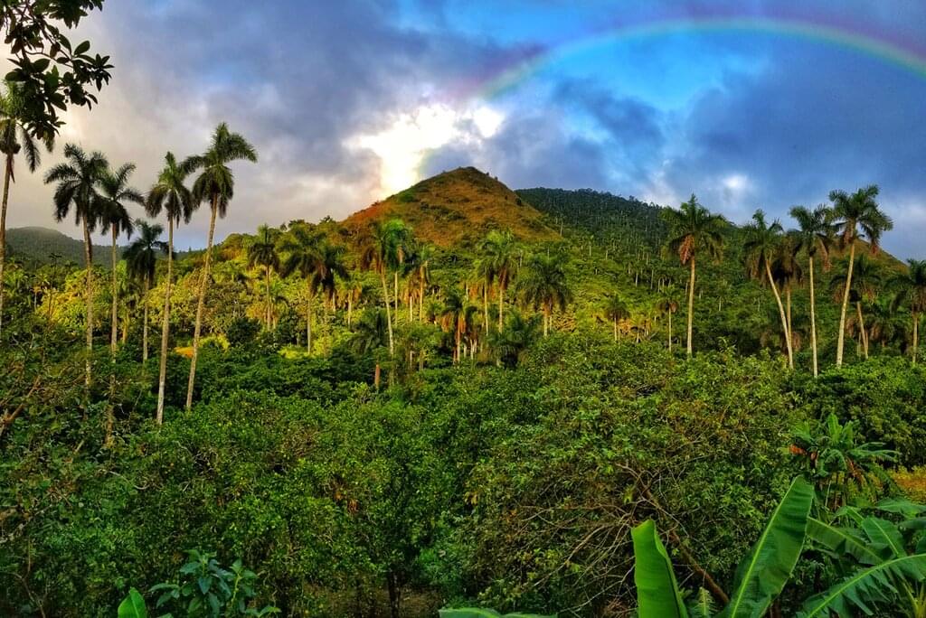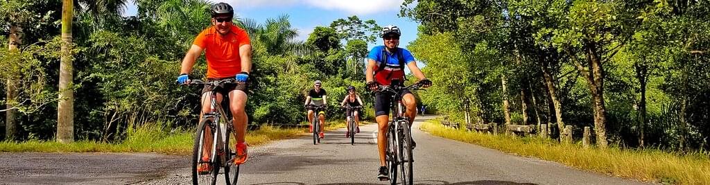 <This morning, you’ll take a guided tour of the Soroa Orchid Garden. Set among seven acres, this oasis of flora features 250 plant varieties native to Cuba as well as numerous species of birds. After, you’ll hop on your bike and cycle west (on well-paved roads), sharing the streets with local traffic – tractors, vintage American cars, old Ladas and horse-drawn carriages. When you arrive at a hillside lake, you’ll take a break before heading for the San Juan River for lunch and a refreshing swim. After, drive to the small but renowned lakeside eco-village of Comunidad Las Terrazas – a UNESCO Biosphere Reserve and home to a lively art community. Grab a coffee near the main square then visit the former home of the celebrated Cuban musician Polo Montanez. Return to Soroa and spend the evening relaxing, playing pool or taking the opportunity to improve on your domino skills.
