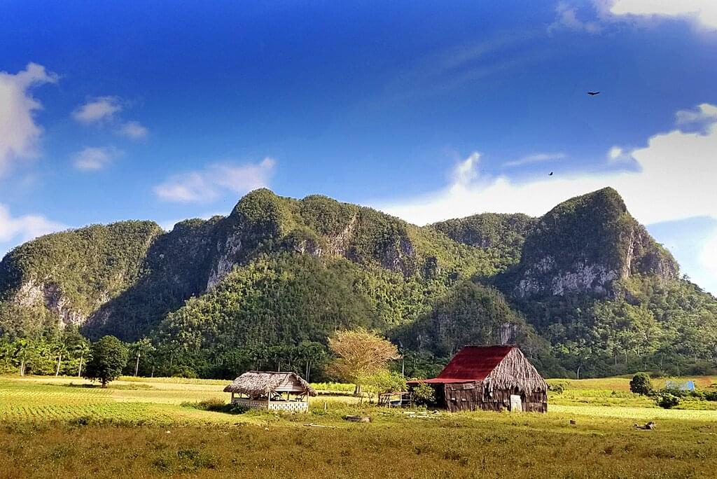 <Drive to the hilly Cueva de los Portales, where the legendary Che Guevara stayed and trained the Western Army of the Cuban Revolution. From here, cycle on to the UNESCO-listed town of Vinales. Set among low-lying mountains, this beautifully remote area is reminiscent of the limestone karst scenery of Vietnam and is the perfect place to ride with very little traffic on the roads. Push your pedals a short distance uphill and be rewarded with spectacular views before continuing on to meet the delightful Mama Luisa – a seasoned farmer who will treat you to a delicious local meal. After, ride to a tobacco farm where you’ll meet another farmer who’ll show you how tobacco is dried and then rolled into cigars – here you have the chance to purchase this Cuban speciality directly from the maker. Jump back into the support vehicle and return to Vinales in time for a farm-to-plate experience at a hillside restaurant. The food here is 100% organic and grown locally, and although drinks aren’t included, you only pay for the mixers as the rum is free!