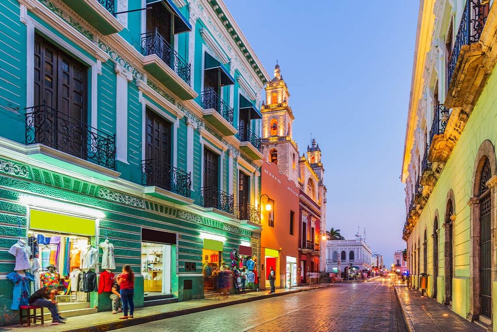 <Today it's onwards towards Merida, the vibrant capital of the state of Yutacan. Merida bridges very different cultures, which can perhaps be best absorbed from the city’s focal point – the Plaza de la Independencia. Here you are surrounded by colonial-era buildings, many of which were built with stones from the Maya temples that were here before. Join your leader for an orientation walk and stop to buy some sweet marquesitas from a street vendor. Native to Merida, this crepe-like pastry is filled with caramel, jam, chocolate or cheese and rolled up like a taco. Delicious! This rest of the day is free for you to enjoy as you like.