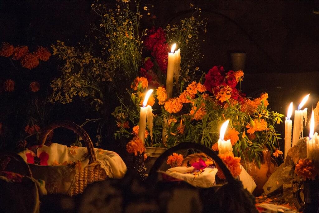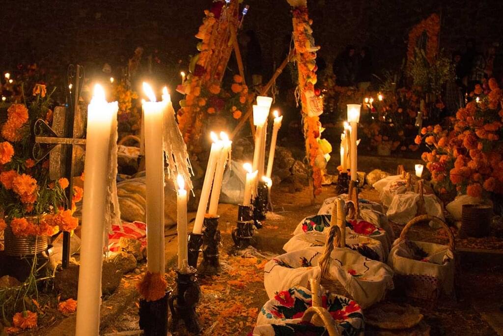 <Enjoy a free morning to further explore on your own before regrouping at 1:30 pm. You’ll wave goodbye to Mexico City this morning and head to San Pedro Tlahuac, where Nahuatl descendants preserve traditions from Pre-Columbian times, including chinampa farming, fiestas and ceremonies. Visit a local family, get acquainted with their traditional customs and join them to create an altar. Making an altar (or ofrenda as it's sometimes called in Spanish) during the Day of the Dead festivities can be a way to remember your ancestors or honour the life of someone who was important. You can get as creative as you like when building the altar with the local family. As part of the Day of the Dead, people organise ceremonies at the cemetery for those not physically with them any longer and commemorate the lives of people passed over. You’ll visit the local cemetery and see how the families decorate the graves of their ancestors with the belief that when they return from the dead, their spirits will go to the cemetery first. Some even elaborately decorate paths to their homes with flower petals to lead the spirits back. It’s an eye opening, yet beautiful experience that you won’t soon forget. You will arrive back at the hotel in Mexico City late in the evening. -