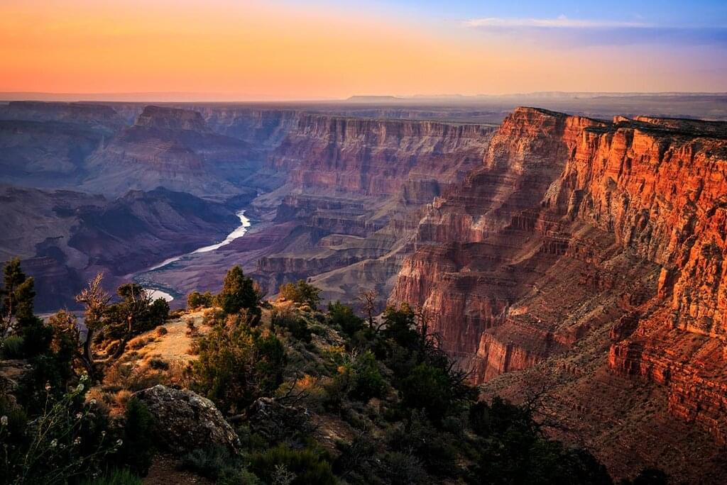 Your total travel time today is approximately 5 hours. We aim to experience either sunset or sunrise at the Grand Canyon rim, depending on season. During spring and fall when the sun sets earlier and rises later, we typically visit for sunrise on Day 5. During the summer months we visit for sunset on Day 4. -
