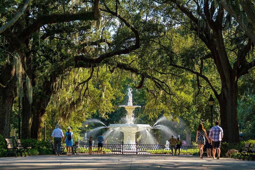 <Hit the road bright and early to make the journey to Savannah this morning. In 1946, Lady Astor referred to Savannah as 'a beautiful lady with a dirty face' in reference to the crumbling, faded majesty of the city's 18th and 19th-century mansions. Due to plenty of restoration work, Savannah's face may no longer be dirty, but she's still a city of contradictions with hidden delights. When you arrive, you’ll join an expert guide for a tour of Bonaventure Cemetery, widely regarded as one of the world's most beautiful cemeteries. Take in its Southern gothic glory as you learn more about this famous spot that has inspired everyone from poets to nature lovers and filmmakers. After, you might like to check out Savannah’s antebellum mansions, towering oak trees and colonial buildings on a stroll around town. In the evening, maybe head out on a ghost tour of old Savannah or seek out spirits of a different kind at one of the city’s many lively bars.