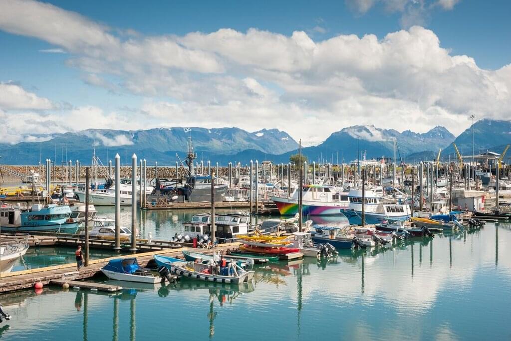 <Embrace an early start to the day as you enjoy a long but scenic drive back through Anchorage and down the Parks Highway to Seward – one of Alaska's oldest and most picturesque towns. Along the way, you’ll stop at Turnagain Arm. A waterway into the northwestern part of the Gulf of Alaska, this area was named for British explorer James Cook, who was forced to ‘turn again’ when the waterway didn’t hold the fabled Northwest Passage on his 1778 voyage. Explore this scenic area, then continue to Seward. This vibrant town is the gateway to Kenai Fjords National Park and has galleries, boutique shops and a bustling harbour.