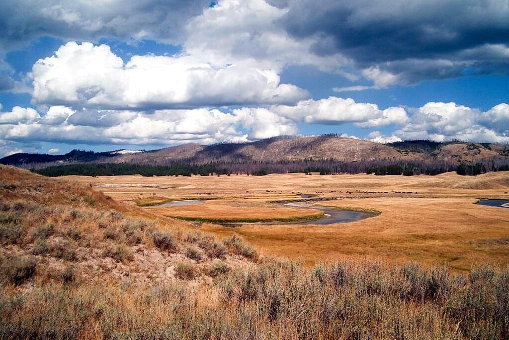 <This morning, set off on an inspiring hike along one of the park’s most scenic trails up to the summit of Mount Washburn, at 3122m the highest point you'll reach on this tour. As you ascend, the path winds through open subalpine meadows dotted with wildflowers. Keep an eye on the hillsides — bighorn sheep are often spotted grazing nearby. When you reach the summit, pause and take in sweeping views over the Grand Canyon of the Yellowstone. From here, you’ll also be able to see the Yellowstone Lake, the Teton Range and the Electric Peak. After hiking back down, take a short drive to the stunning Grand Canyon of the Yellowstone where you enjoy a short but picturesque hike out to Artist Point and incredible views of the majestic Lower Falls of the Yellowstone River. Learn about how the Grand Canyon of Yellowstone was formed during the glacial ice dam in Hayden Valley and explore the two thunderous waterfalls and multi-coloured canyon walls which the area is known for. The rest of the afternoon is free for you to explore nearby, or simply relax at the lodge after a satisfying day’s hiking.