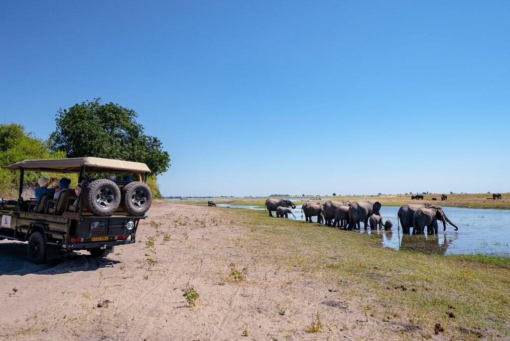 <Wake up nice and early this morning and head out on a sunrise walk. Along the way, keep watch for elephants and if the timing is right, you might also come across some Cape buffalo! These noble-looking beasts are more dangerous than they look and their horns double as a bone shield that's fittingly known as a 'boss'. Return to camp for breakfast, where you’ll have the rest of the day to relax. Take another optional mokoro trip to soak up that serene river atmosphere or maybe a nap could be on the cards. -