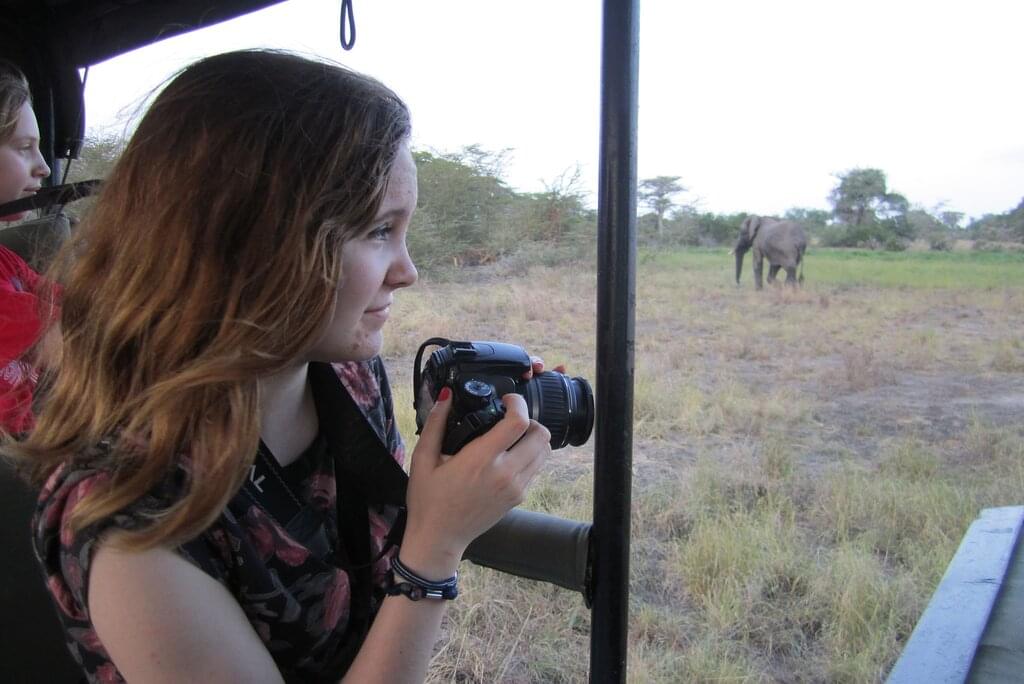 <This morning, set off on a 4WD game drive adventure. Journey through the park, you’ll see wildlife up close, and with luck, you’ll spot lions and exotic birds. Botswana's first national park is known for its many elephants and hippos, so keep an eye out for herds walking by, too. They can also often be seen swimming in the Chobe River! The river also attracts buffalo, hippos and crocodiles who like to sun themselves by the water's edge. In the afternoon, take a sunset boat cruise along the river and gain a different view of these amazing animals and landscape. -