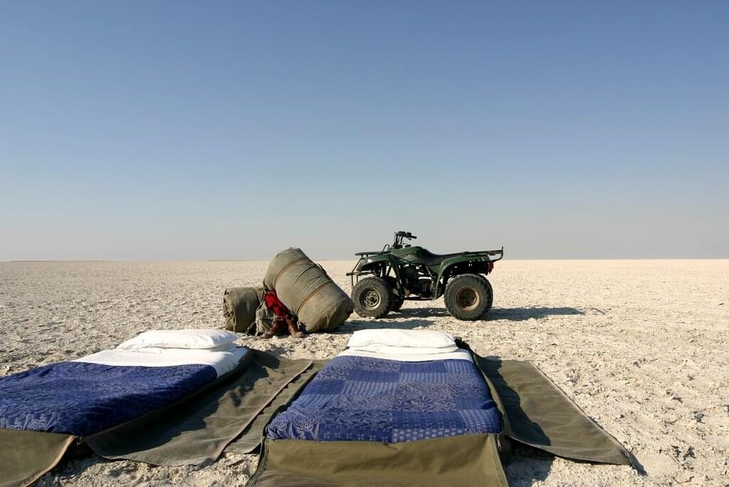 In the case of adverse weather, when participating in the Sleep Out experience, dome tents will be provided as back-up accommodation. The Pan Sleep Out experience is seasonal and is only able to operate from 1 June to 31 October. If you are travelling to Makgadikgadi outside of these dates, you will spend two nights at Planet Baobab instead. You will need a small, overnight bag for the Sleep Out tonight. -