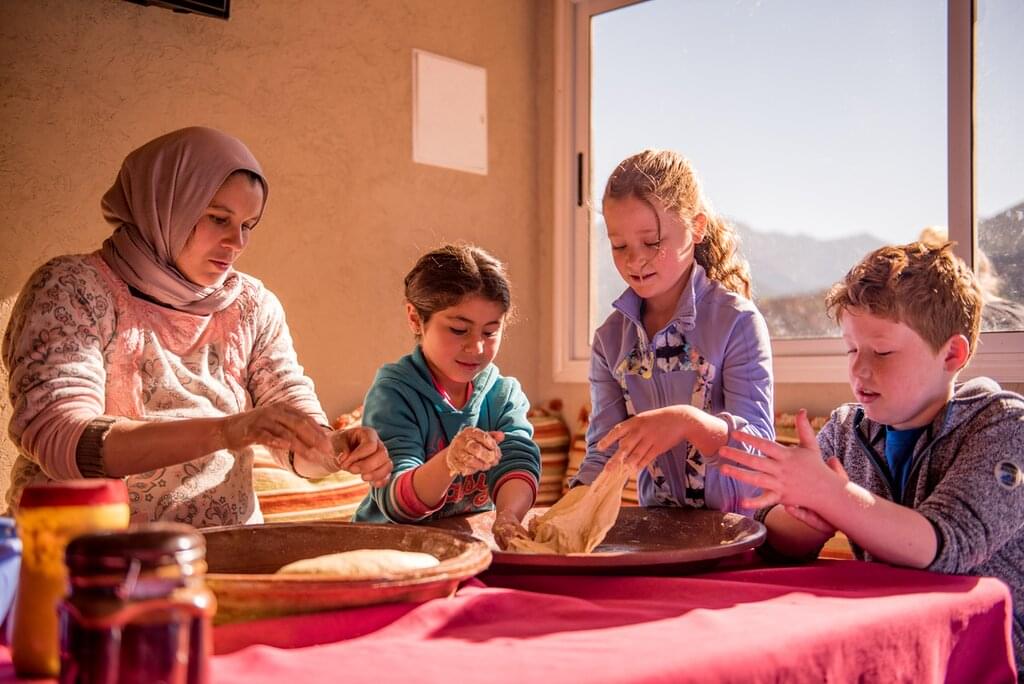 <This morning, you'll have a bread cooking demonstration for breakfast and maybe an early morning walk around the village of Imlil. Transfer to Taroudant, passing through some Amazigh villages and across the High Altas Mountains via the Tizi n Tast, which gives you a great view of the largest plain of Sous. Arriving at your accommodation in the late afternoon, maybe take the kids for a swim in the pool and have a relaxing evening.