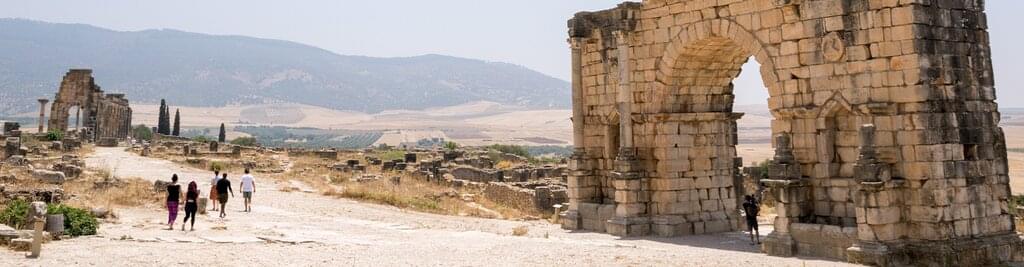 <This morning, you’ll visit one of the most impressive sites in Casablanca – the mighty Mosque of Hassan II. Second only in size to the great mosque at Mecca, the huge building sits partly on land and partly over sea and is one of the only religious sites open to non-Muslims. Later, leave Casablanca and drive to Meknes, where you’ll explore the charming streets of the medina – the old walled section of the city. Drive on to the mosaic-filled Roman ruins of Volubilis, where a local guide will show you around and help you imagine the bustling city that once was. Enjoy a picnic lunch of fresh bread, cheese, seasonal fruits and olives from the market. In the late afternoon, continue to Fes, your home for the next two nights.
