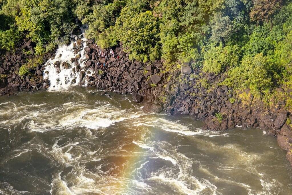 <Guess what? You’re at the edge of the greatest curtain of falling water in the world. After a leader-led orientation walk of the town, enjoy a day of free time to take up one of many activities on offer in the area, including a gorge swing or whitewater rafting! There are many ways to take in the thundering sight and sound of the falls. These staggering cascades are about a mile wide, falling 108 m into a narrow gorge below. In the wet season, the spray rises high and the falls become a torrent; in the dry season, the lack of spray gives way to a nice view of the islets in the river below. Tonight, sit down to a traditional Zimbabwean dinner and cultural performance by White Star, who celebrate and preserve African stories and values through movement, while their profits go to supporting vulnerable groups and providing free dance lessons to local youth. Dinner will feature local Zimbabwean dishes, including village-style goat stew and peanut butter rice.