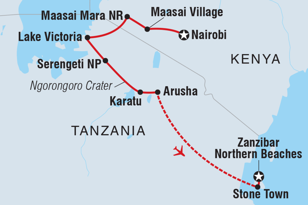 Got 13 days and a desire to see as much of East Africa as you can? Welcome to the trip of a lifetime. This trip is the perfect introduction to the diversity of East Africa – go on 4WD safaris in the Maasai Mara and Serengeti National Parks, stop at remote market towns, spend a night in a Maasai village, explore the Ngorongoro Crater in a jeep, then top it all off with two full days to enjoy the powdery beaches of Zanzibar. Do it all with a small group of like-minded travellers, forging new friendships along the way.
