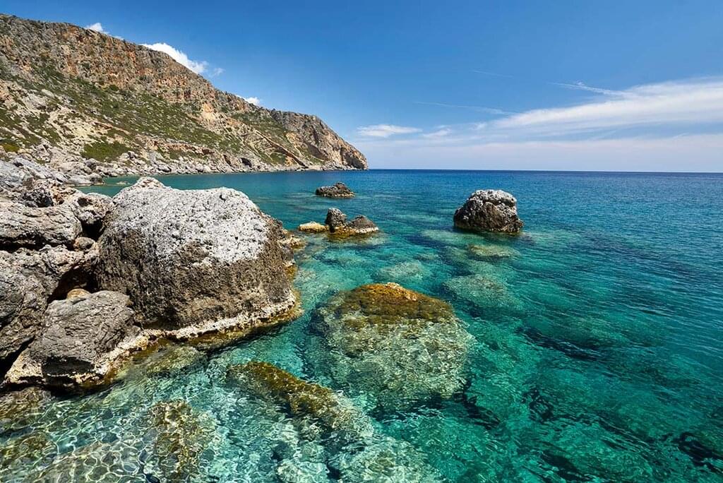 <Lace up your boots as you set off on a hike through the gorges this morning, stopping at the entrance of Agia Eirini Gorge along the way. Hear stories about the area’s historic past and how it once hid Greek rebels during the Turkish Occupation. Look out for the endangered Cretan wild goats and dittany trees as you walk. After, travel along the beautiful south coast to the village of Sougia. This is Crete at its very best – an undiscovered sweep of beach overlooked by mountains. When you arrive, the afternoon is yours to spend at leisure.