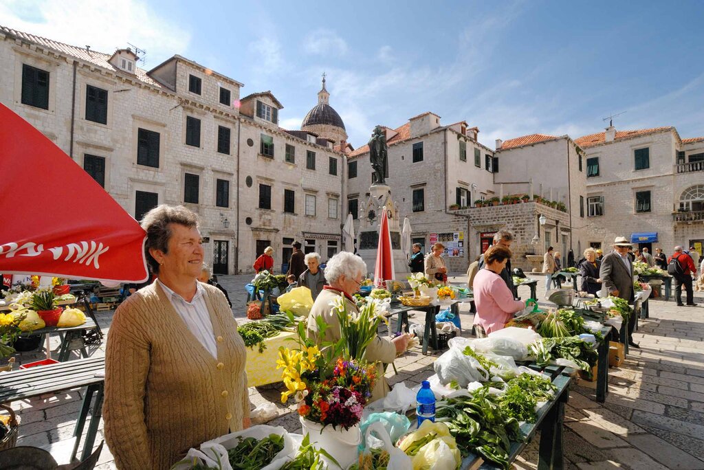 <Dobro dosli! Welcome to Croatia. Your adventure begins in Split – right on the Adriatic coast, this is Croatia’s second-largest city. You’ll be collected from the airport and transferred to your hotel when you arrive, ready for your welcome meeting at 6 pm tonight. If you arrive early, you might like to visit the Mestrovic Gallery, which displays the remarkable work of one of Croatia’s greatest sculptors. After the meeting, get to know your fellow travellers and group leader over dinner at one of Split’s local restaurants and maybe try some brudet (a rustic seafood stew) and rozata (a creamy custard pudding). Tonight, you’ll stay in your Feature Stay – Santa Lucia Heritage Hotel in the Pjaca (the most beautiful square in Split).