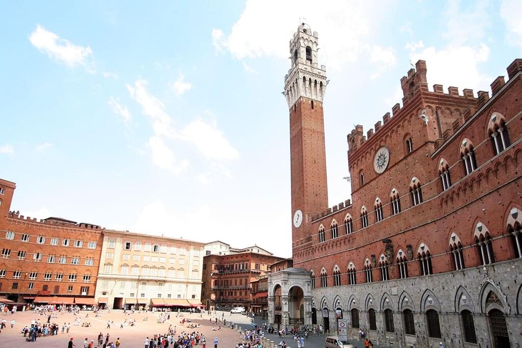 <Today you’ll take a private vehicle to the city of Siena, where your leader will show you the most interesting sights on an orientation walk. At the city’s heart is Piazza del Campo – home to the biannual Palio horse race and nearby the Siena Cathedral. Next, visit Monteriggioni – a medieval walled town with over a dozen towers once used to defend Sienese territory from the Florentines. You’ll have time to explore this tiny hilltop spot before arriving at your Feature Stay accommodation near San Gimignano. This country hotel with views of a tree-studded landscape geatures an outdoor pool and an on-site restaurant. Tonight, indulge in an included gourmet dinner made with local ingredients that pays homage to traditional Tuscan dishes, with a modern twist.