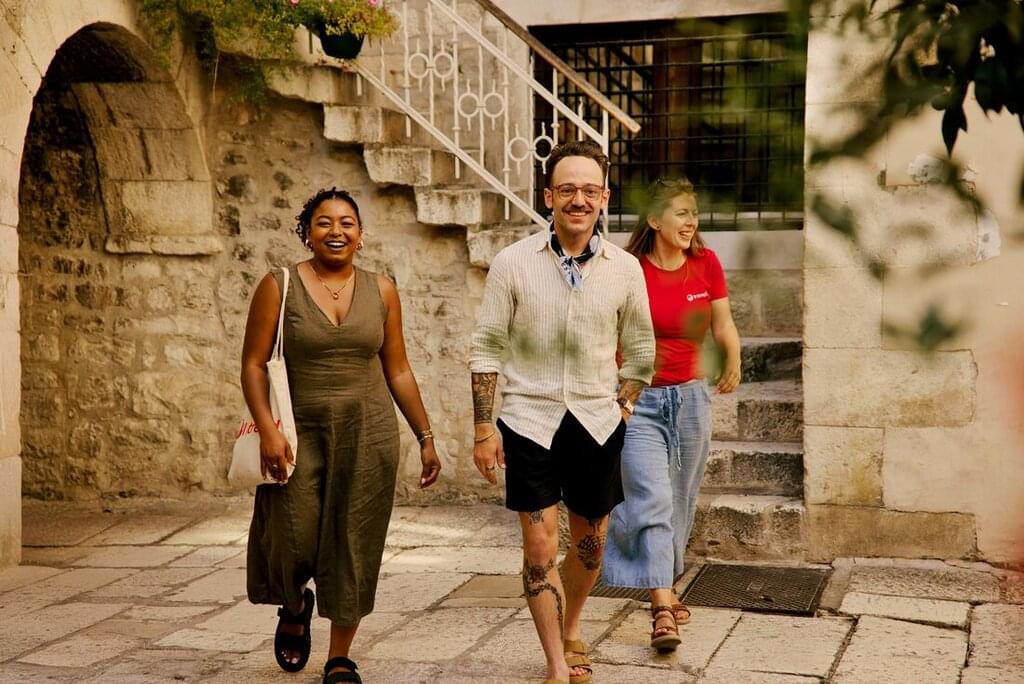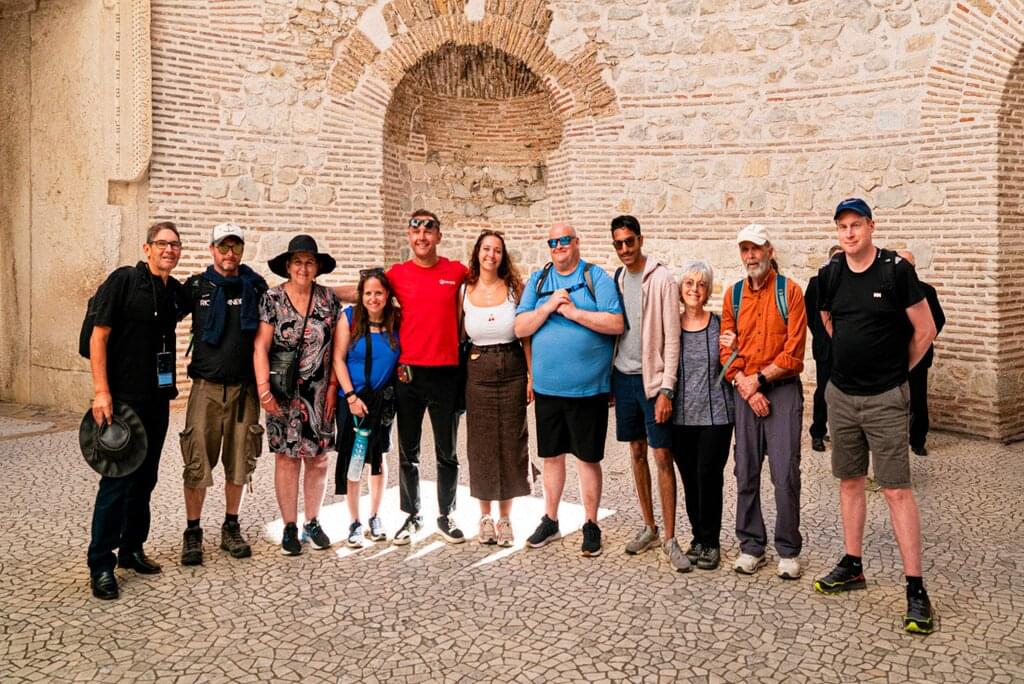 <Dobro Dosli! Welcome to Croatia. Your adventure begins in the coastal city of Split, with a welcome meeting at 6 pm tonight. If you arrive early, maybe visit the ruins of Diocletian's Palace, explore the original basements under the city or simply unwind with a walk along the waterfront. After your meeting, maybe head out for dinner with your group or grab a drink at a bar on the Riva Promenade.