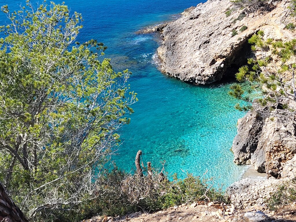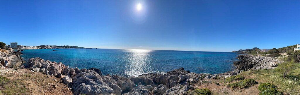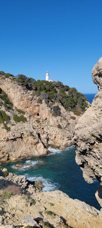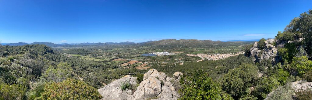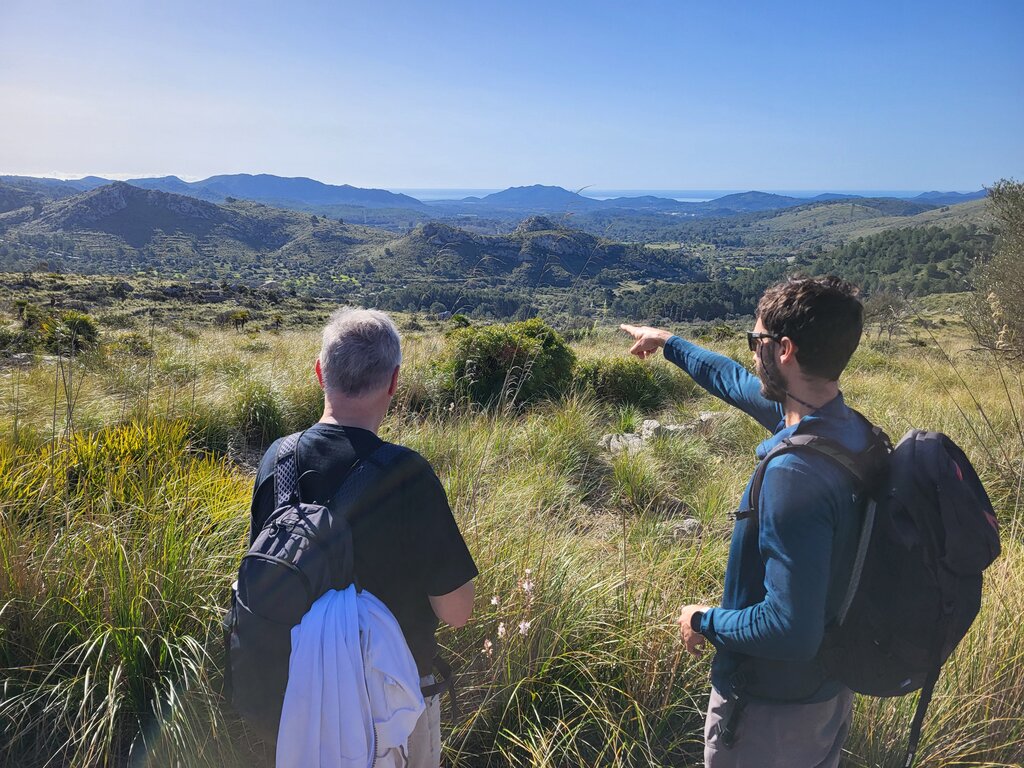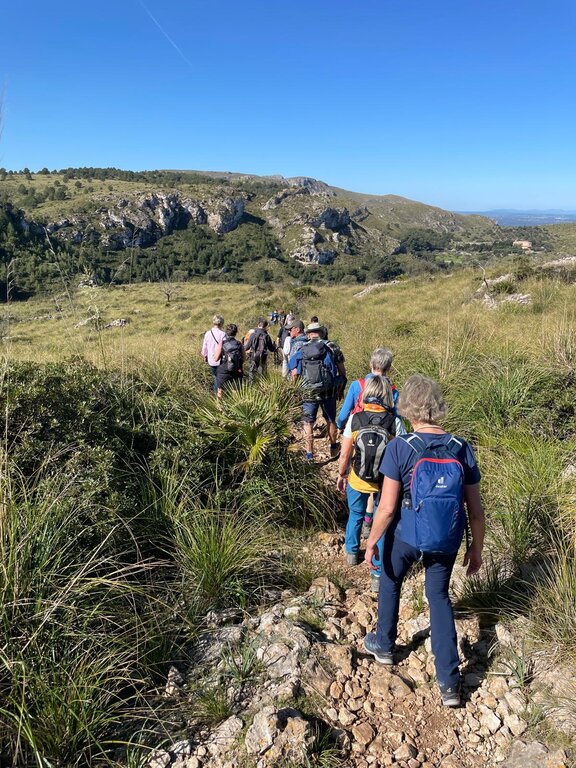 <Heute führt uns der Weg an die Nordküste, zur malerischen Bucht von Alcúdia. Unsere Wanderung geht über den Sattel unterhalb Gipfel der Atalaya de Alcúdia, von wo sich ein beeindruckender Ausblick über die gesamte Ostseite der Insel eröffnet. Vor uns glitzert das endlose Meer in der Sonne, während sich im Hintergrund die majestätische Bergwelt der Tramuntana erstreckt – ein unvergesslicher Moment mitten in Mallorcas Naturparadies. Schließlich steigen wir ab zur Ermita de la Victória.