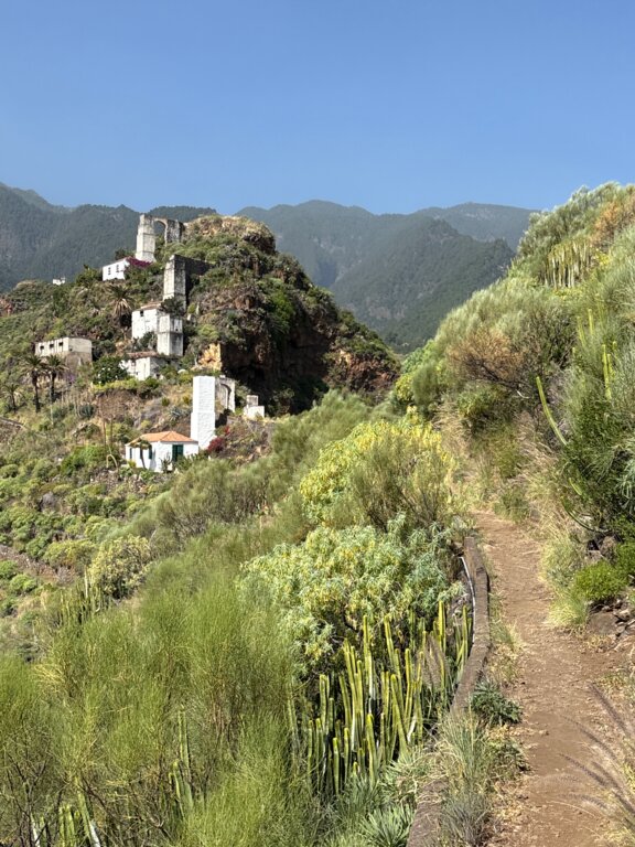 <Heute führt uns unsere Wanderung in den Norden La Palmas, ins traditionelle Dorf Gallegos, eingebettet in eine ländliche Umgebung. Durch die Schlucht steigen wir hinab, stets begleitet von fantastischen Ausblicken auf den Atlantik.