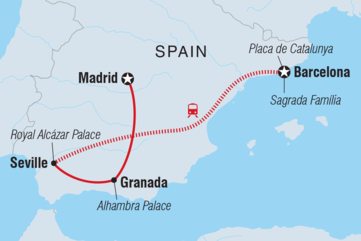 Tritt in die Fußstapfen von Gaudi und Picasso, probiere edle Weine und Tapas und wandere durch die weiß getünchten Dörfer, die Spanien zum Leben erwecken. Auf dieser achttägigen Reise von Madrid nach Barcelona erlebst du Flamenco in Sevilla, erkundest die Pracht des Alhambra-Palastes in Granada und besuchst die Sagrada Familia - die größte unvollendete katholische Kirche der Welt. Begleite deinen örtlichen Reiseleiter auf Orientierungsspaziergängen durch jede Stadt und lerne dabei die köstlichen Küchen und die architektonische Geschichte des Landes kennen.